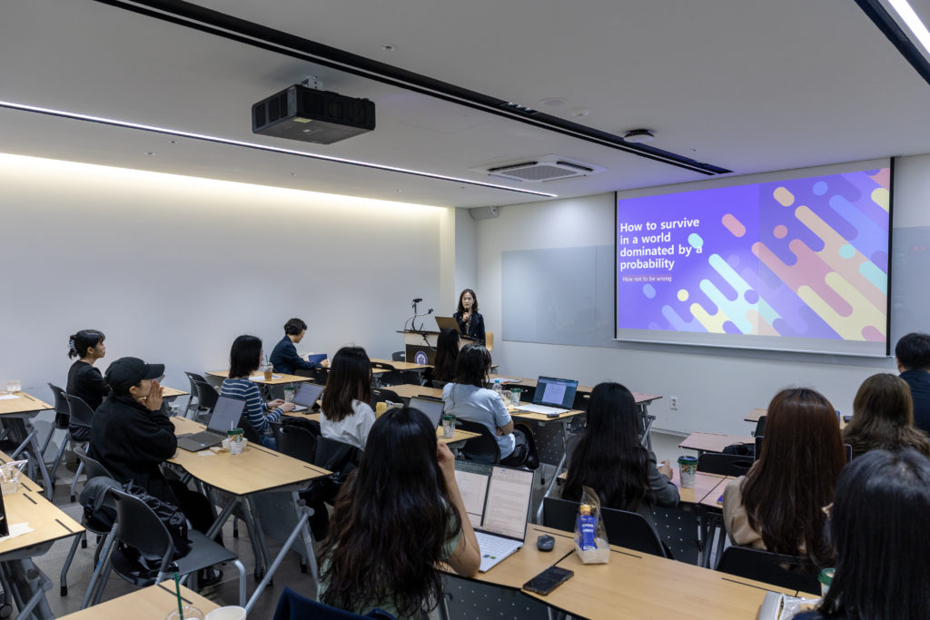 첫 번째 발표에서 이홍주 교수(소비자경제학과)는 “데이터로 보는 소비자 행동 분석: 소비자는 무엇을 살까?”라는 주제로, 실제 소비 패턴 분석 사례를 통해 데이터가 인간의 선택을 어떻게 시각화할 수 있는지를 보여주었습니다. 이어서 김양진 교수(통계학과)는 “확률이 지배하는 세상에서 생존하기”를 주제로 통계학이 불확실성의 시대를 이해하는 중요한 도구임을 흥미롭게 풀어주셨습니다.